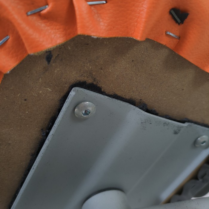 座面裏の不織布生地がボロボロと剥がれている状態