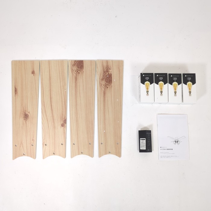 ■セット内容:本体、羽根×4(リバーシブル)、シェード×4、シェード固定リング(本体装着済)×4、取付金具(本体装着済)、リモコン、フィラメントLED電球×4、取扱説明書、