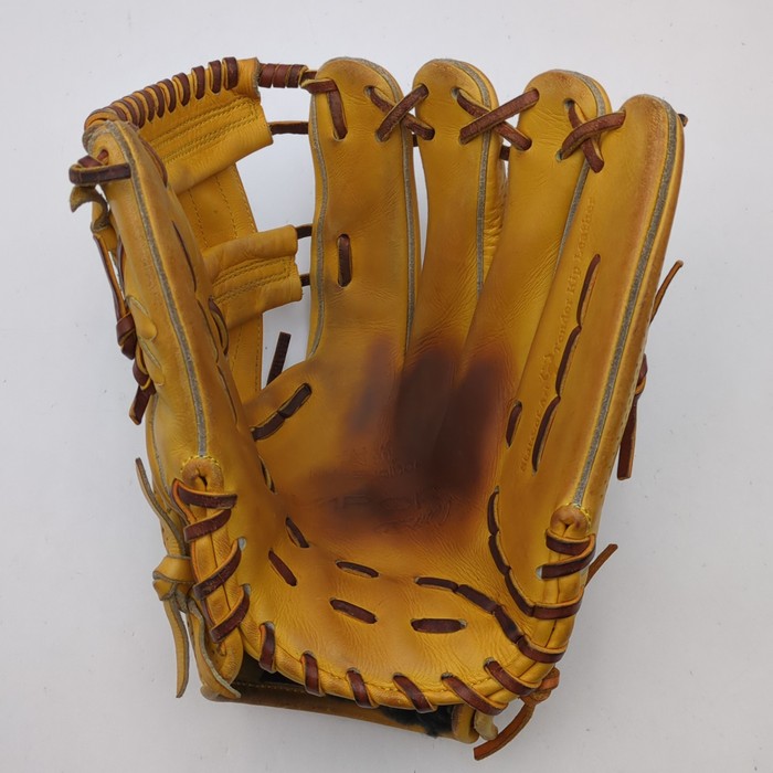 ポケットと人差し指付け根に目立つ汚れがある状態