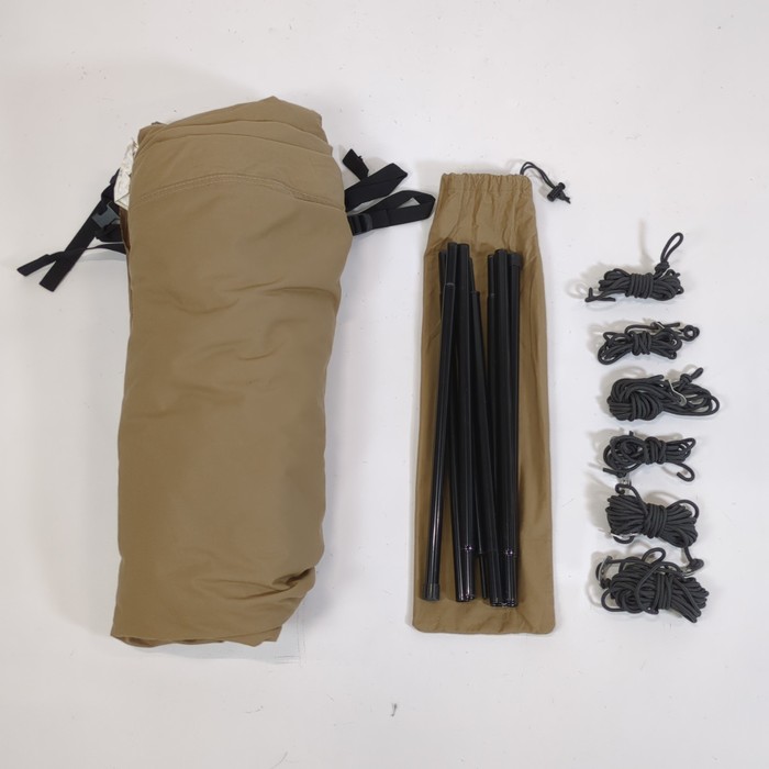 ・通常のテント素材に比べ、綿混紡は火の粉による穴があきにくい素材ですが、防炎加工ではございませんのでシェルター内あるいはシェルター近くでの焚き火はご遠慮ください。