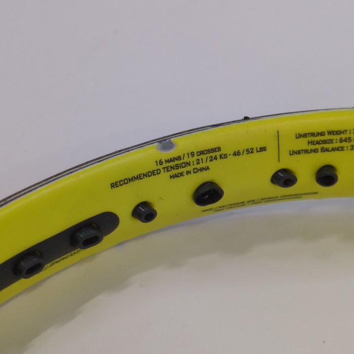 ガットは硬式ラケットが白のバボラシンガット(ナイロンモノフィラメント)・軟式ラケットが白のトアルソンゴールド(ナイロンモノフィラメント)、バトミントンはトアルソンイオン(ナイロンモノフィラメント)です。※他のガットに変更不可